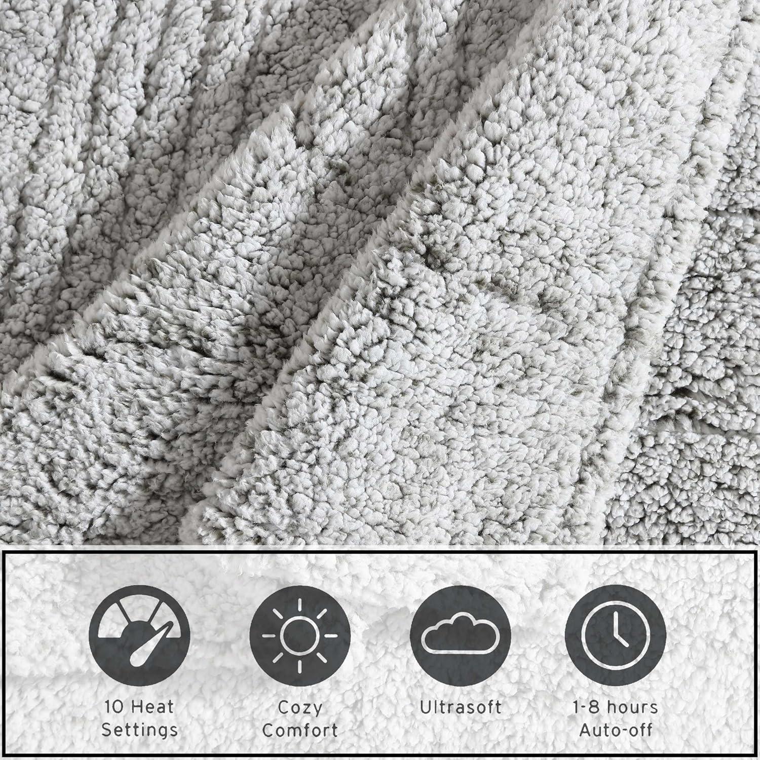 Eddie Bauer – Heated Blanket, Ultra-Soft Rib Plush Throw Blanket w/Solid Sherpa Reverse, Knitted Bedding for Couch or Bed w/ 4 Heat Settings & Auto Shut-Off (Lookout Mountain Green, 50″ x 70″)(Lookout Mountain Brown)