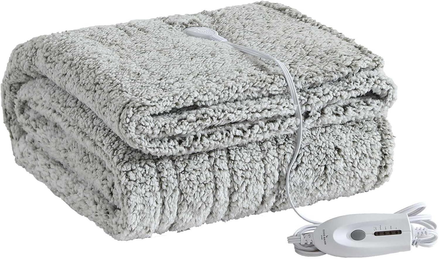 Eddie Bauer – Heated Blanket, Ultra-Soft Rib Plush Throw Blanket w/Solid Sherpa Reverse, Knitted Bedding for Couch or Bed w/ 4 Heat Settings & Auto Shut-Off (Lookout Mountain Green, 50″ x 70″)(Lookout Mountain Green)