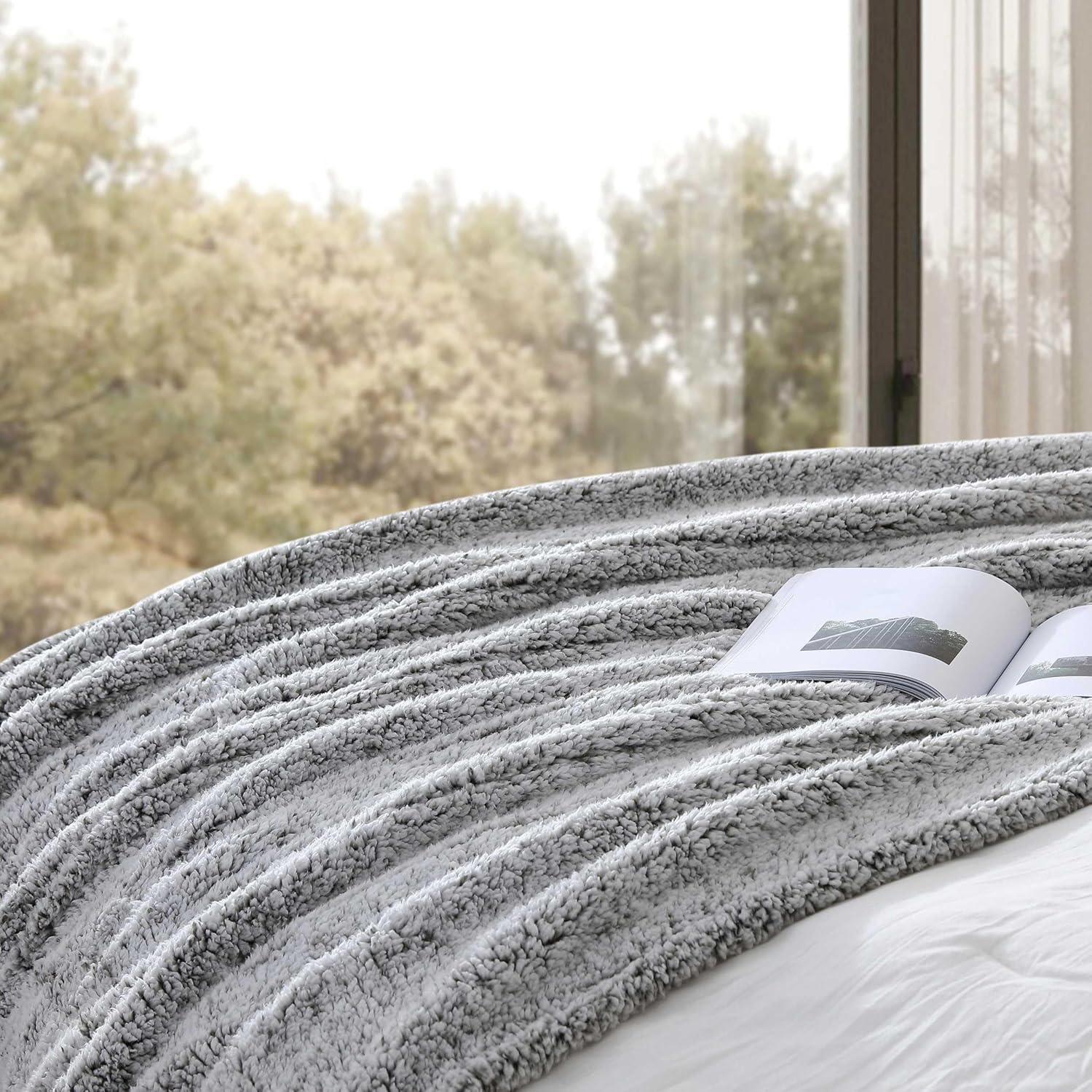 QUALITY: Made from premium ribbed plush polyester on one side and a dense high‑pile solid Sherpa reverse, our blanket delivers an irresistibly smooth, velvet‑plush touch paired with fluffy warmth. It’s breathable yet insulating, lightweight yet deeply comforting—designed to withstand everyday use without losing its softness or sleek appearance.