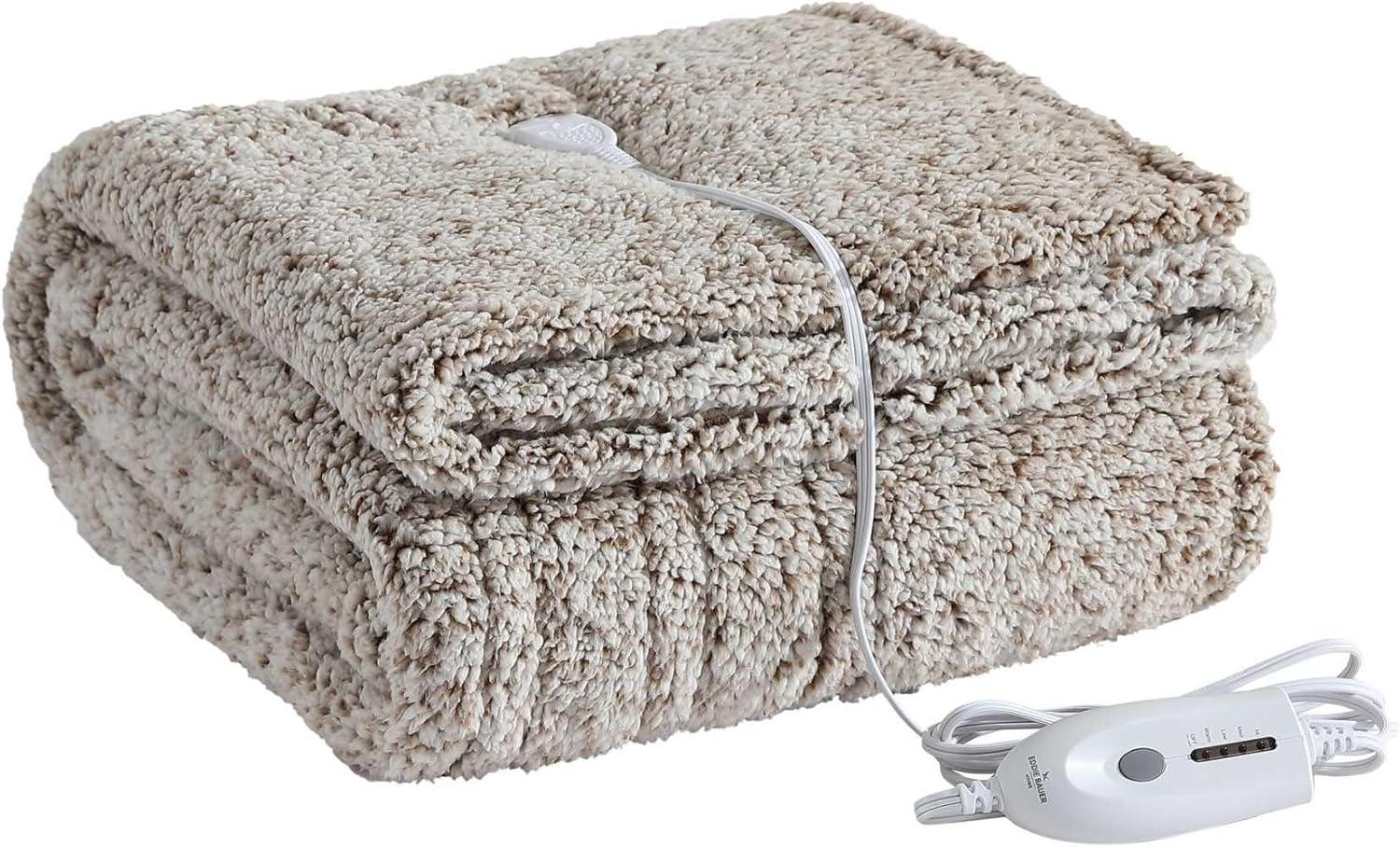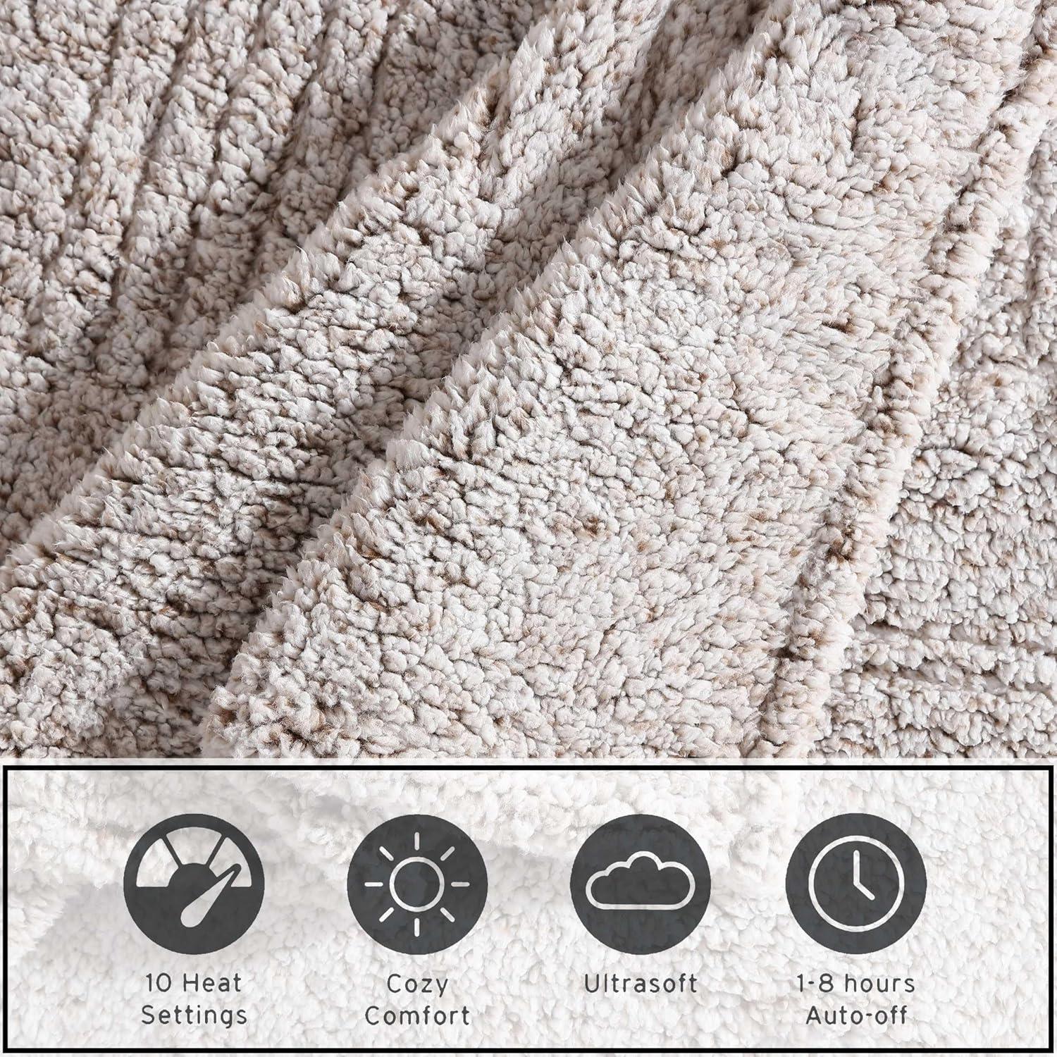 Eddie Bauer – Heated Blanket, Ultra-Soft Rib Plush Throw Blanket w/Solid Sherpa Reverse, Knitted Bedding for Couch or Bed w/ 4 Heat Settings & Auto Shut-Off (Lookout Mountain Green, 50″ x 70″)(Lookout Mountain Brown)