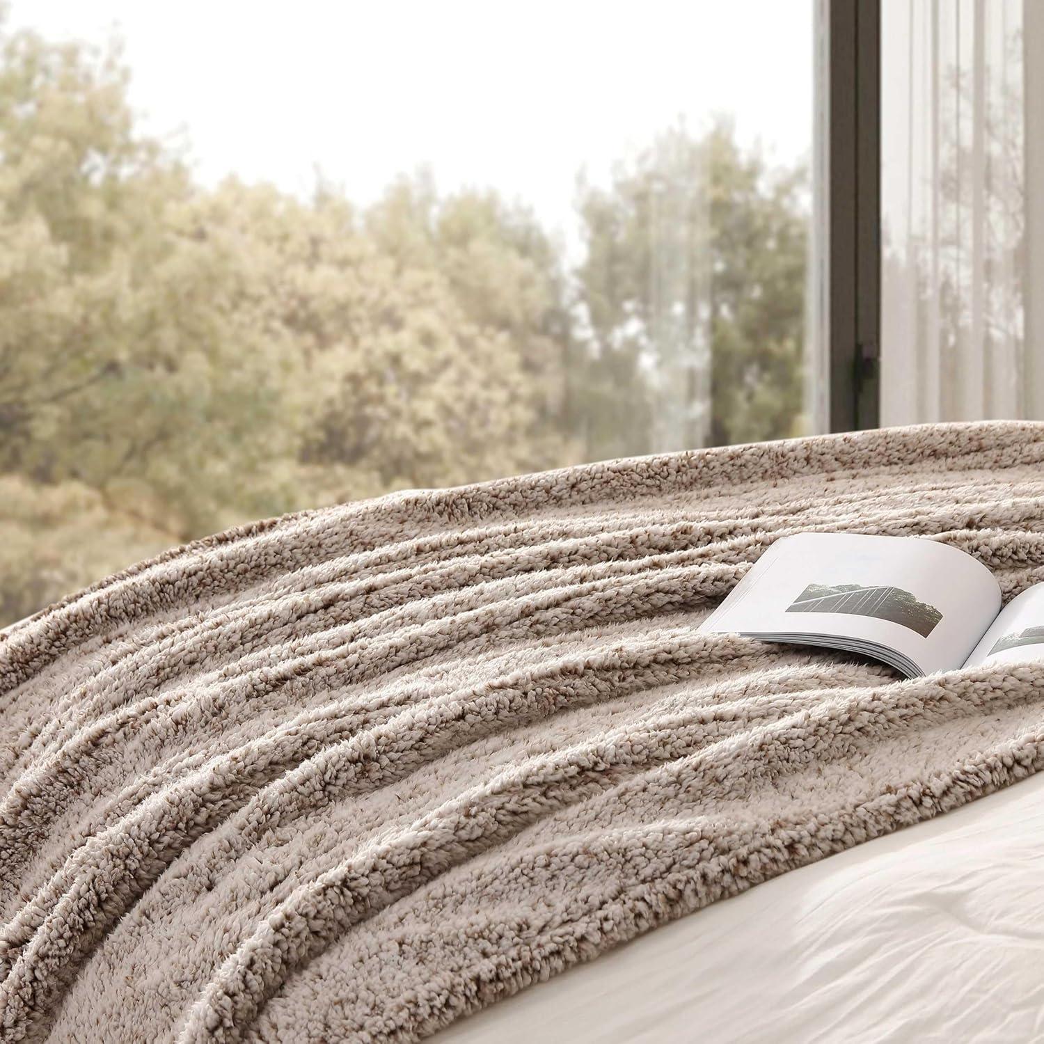 Eddie Bauer - Heated Blanket, Ultra-Soft Rib Plush Throw Blanket w/Solid Sherpa Reverse, Knitted Bedding for Couch or Bed w/ 4 Heat Settings & Auto Shut-Off (Lookout Mountain Green, 50" x 70")(Lookout Mountain Brown)