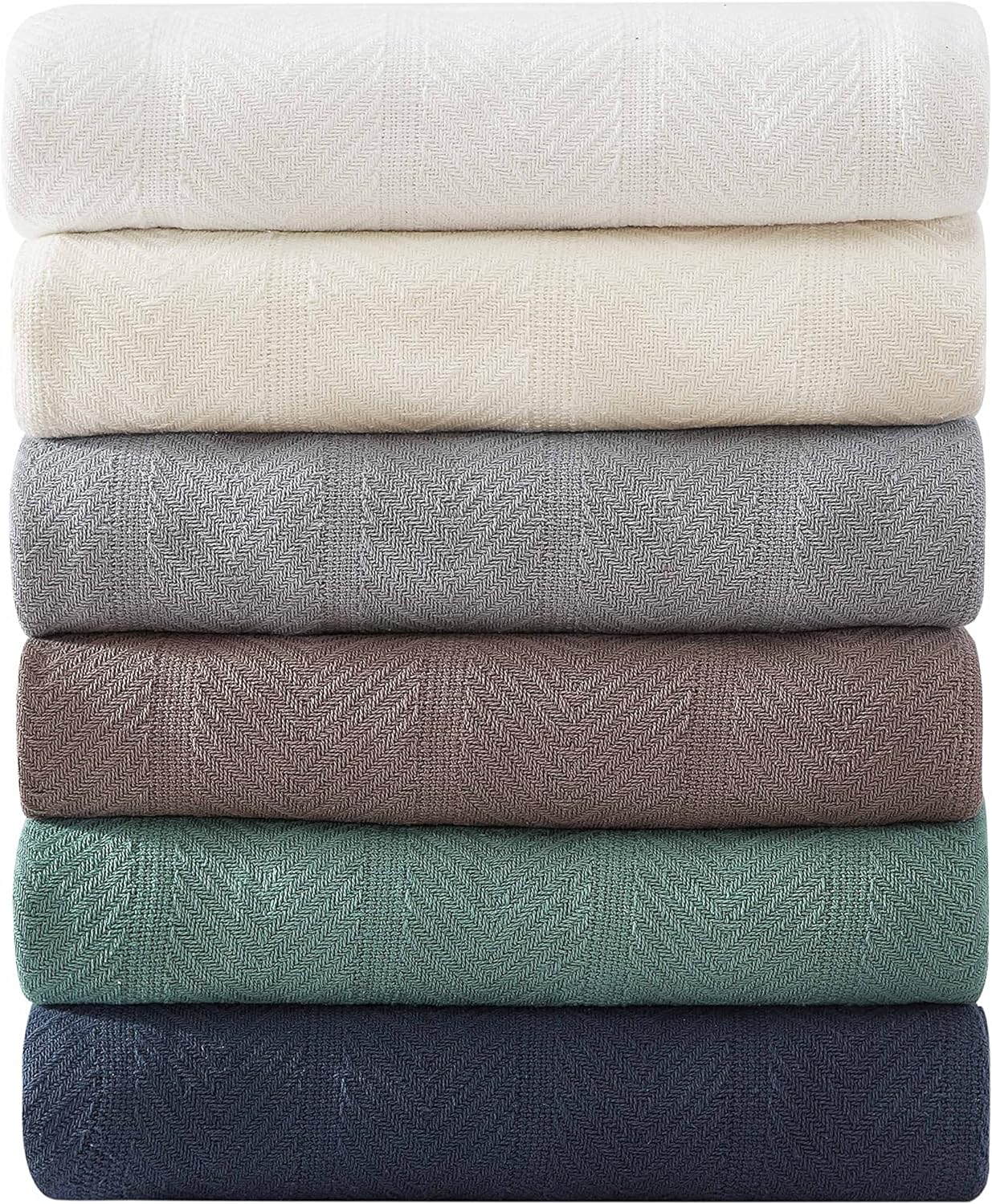 Add an extra layer of warmth to your bedding ensemble with the Eddie Bauer Herringbone Cotton Blanket. Available in several gorgeous colorways, this stylish cotton blanket will seamlessly coordinate with any bedroom décor. The high quality, ultra cozy construction offers comfort and is perfect for any room in your home. Featuring a subtle allover herringbone design, the yarn dyed cotton blanket can be used alone or layered onto your bed for the colder winter months. Blanket is machine washable for easy care. Twin blanket dimensions: (90″L x 66″W). Full/Queen blanket dimensions: (90″L x 90″W). King blanket dimensions: (90″L x 108″W).
