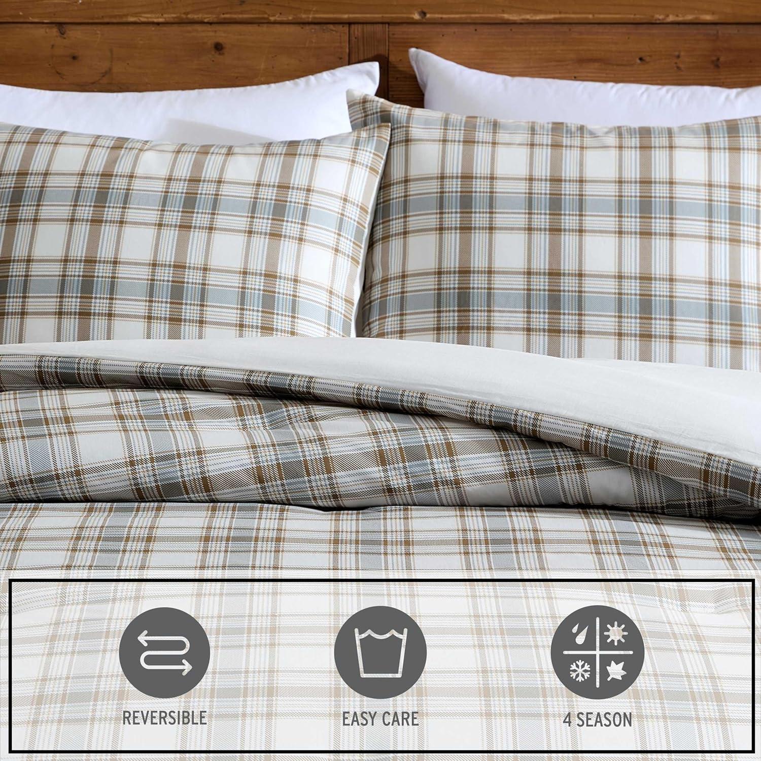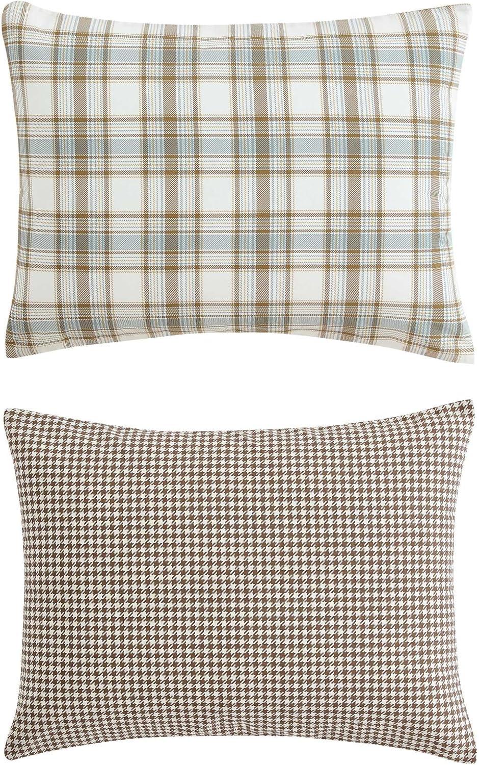 The Eddie Bauer Harrison comforter set adds a touch of classic sophistication to your bedroom with its bold, tailored design. Featuring a striking brown and cream Houndstooth pattern on one side and a solid brown reverse, this comforter offers versatile styling to suit both traditional and contemporary tastes. Made from 100% cotton with a 100% polyester fill, it provides a medium weight that's perfect for year-round comfort. The set includes coordinating side European closure shams that are fully reversible, allowing for a cohesive and polished look. Machine washable and easy to care for, this comforter set combines timeless style with everyday convenience.