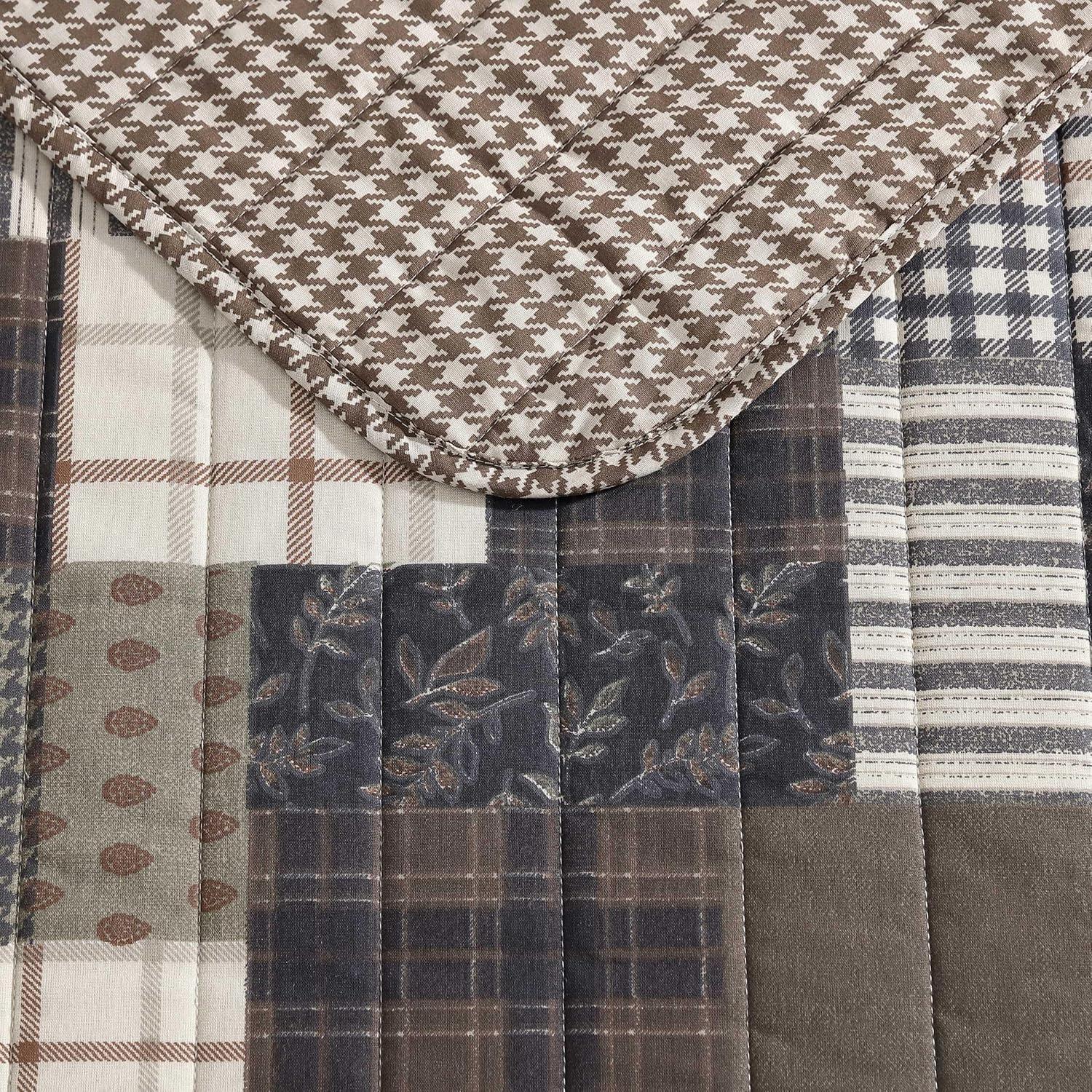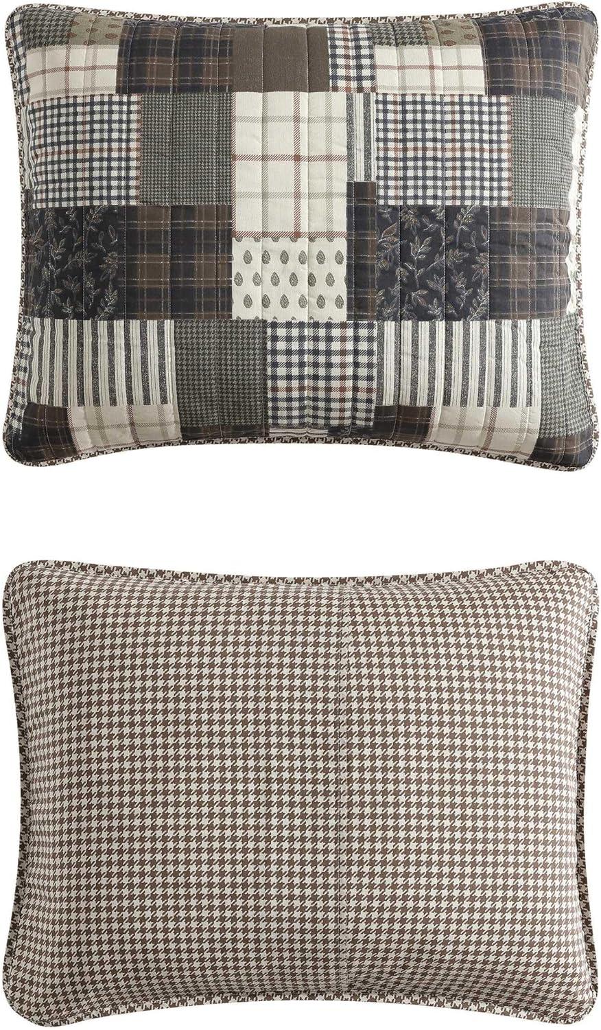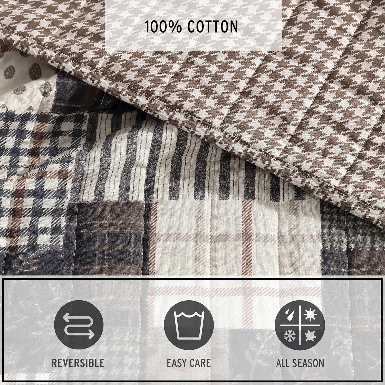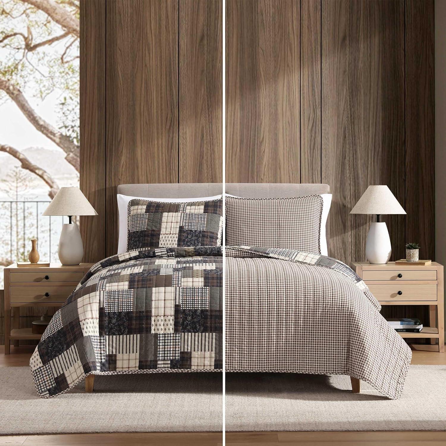 Eddie Bauer - Twin Quilt Set, Naturally Soft Cotton Bedding w/a Lightweight Feel for All-Year Comfort, Reversible w/Matching Pillowcase, 2 Piece Bed Set (Moose Plaid/Pinstripe/Patchwork Blue)(Antique Brown)