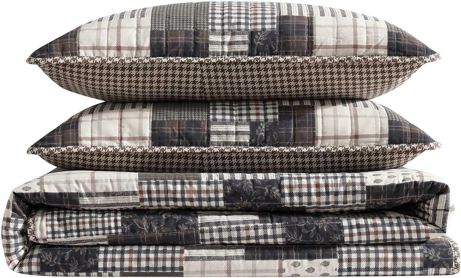 Eddie Bauer – Twin Quilt Set, Naturally Soft Cotton Bedding w/a Lightweight Feel for All-Year Comfort, Reversible w/Matching Pillowcase, 2 Piece Bed Set (Moose Plaid/Pinstripe/Patchwork Blue)(Antique Brown)