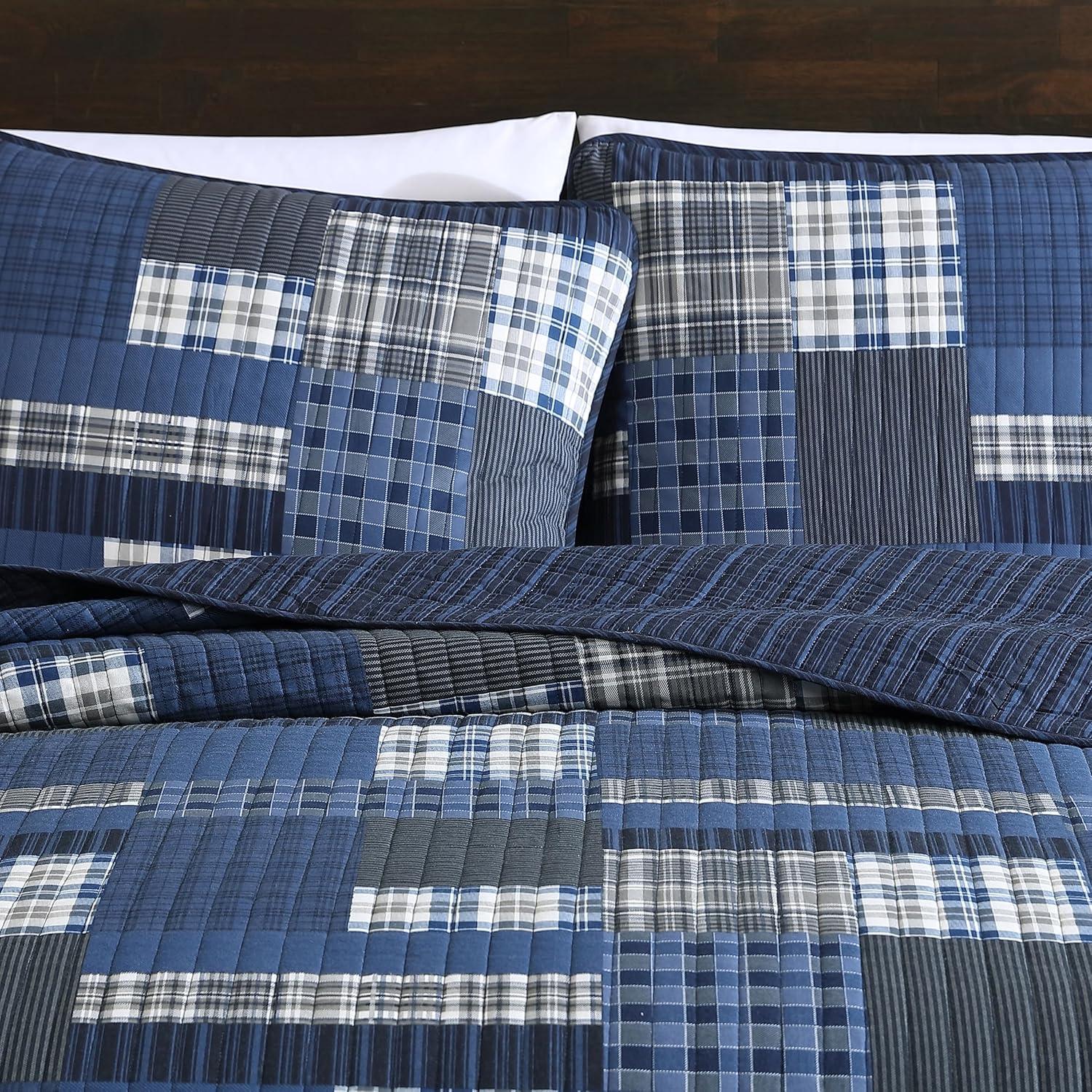 Eddie Bauer - Twin Quilt Set, Naturally Soft Cotton Bedding w/a Lightweight Feel for All-Year Comfort, Reversible w/Matching Pillowcase, 2 Piece Bed Set (Moose Plaid/Pinstripe/Patchwork Blue)(Eastmont Navy)