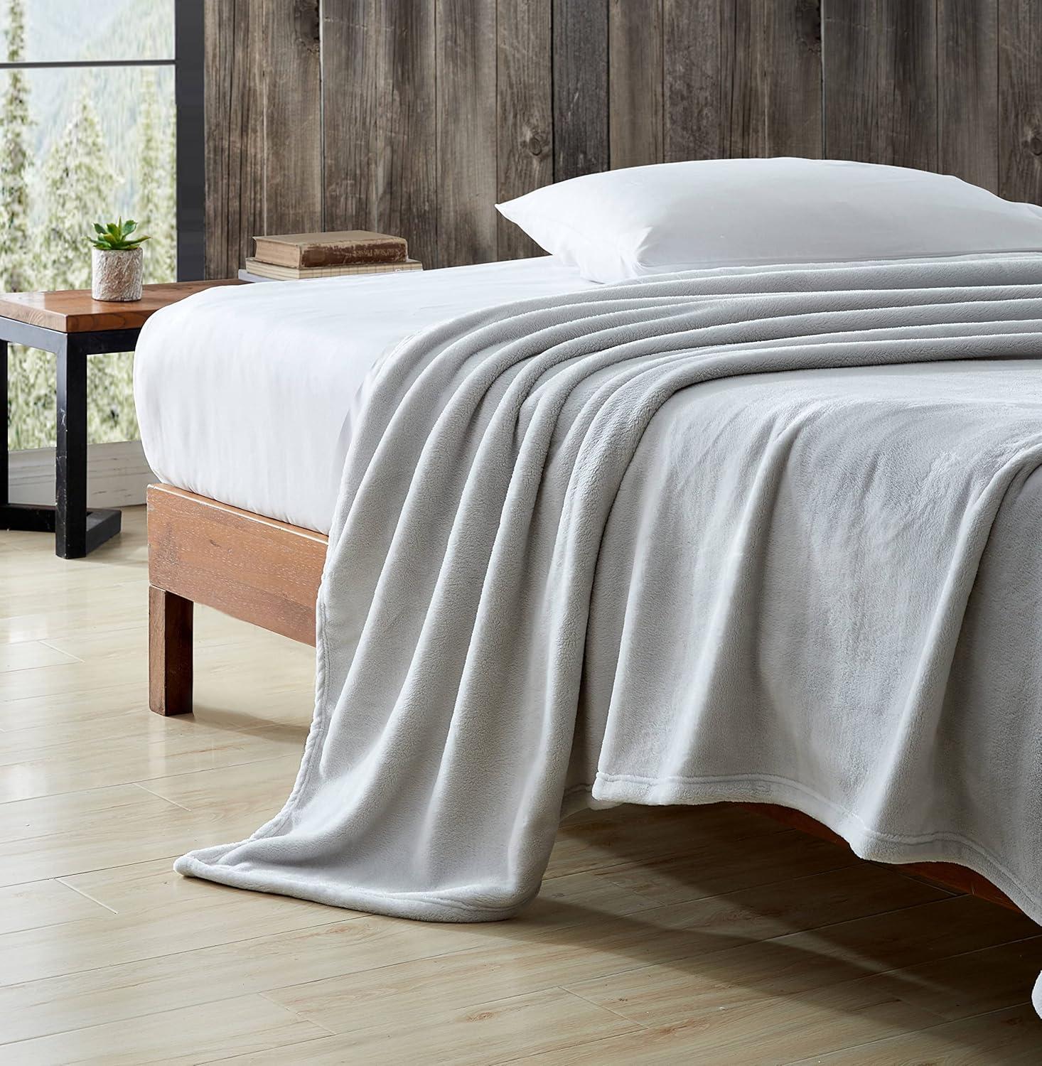 Eddie Bauer – Twin Size Blanket, Ultra-Soft Plush & Reversible Plaid Bedding for Year Round Comfort, Throw Blanket for Couch or Bed (Trailhead Plaid Beige)(Pebble Grey)